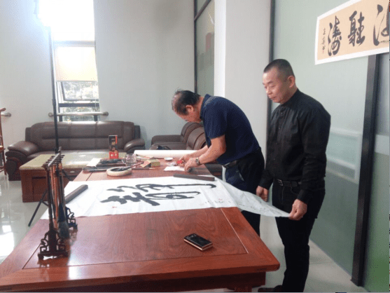 首先請(qǐng)看下我們的掌舵人周總在干什么?在寫字!這是怎么回事呢?放大看下!